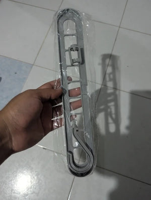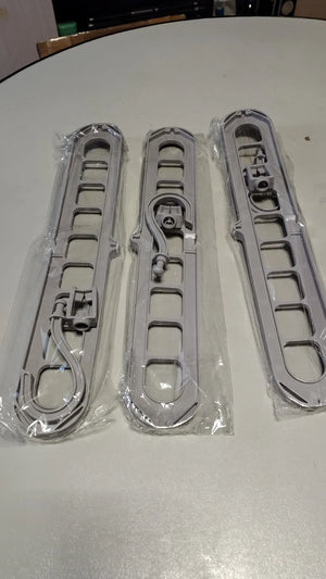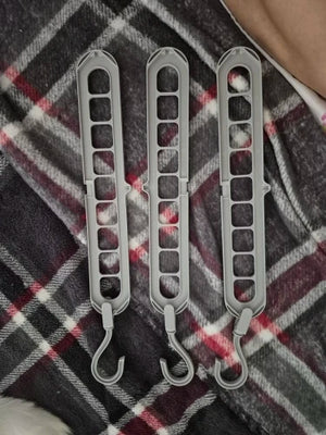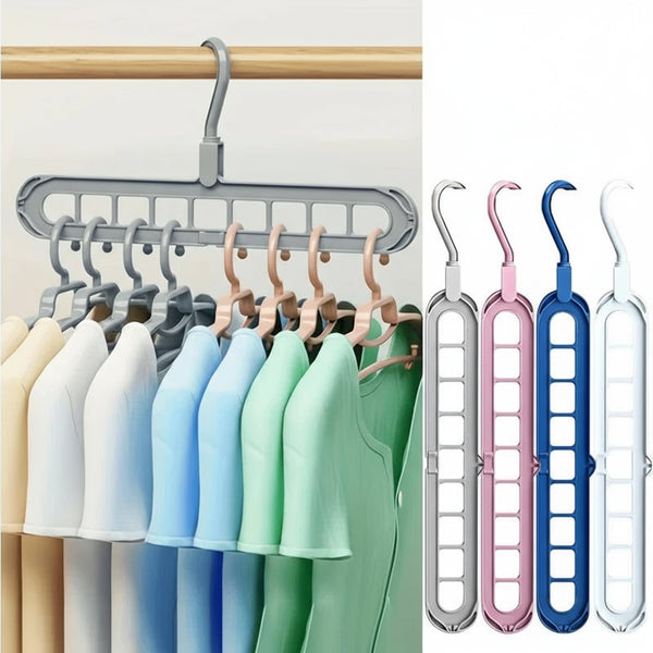 Designul cu nouă găuri permite agățarea mai multor articole pe același umeraș, maximizând spațiul disponibil și menținând ordinea.